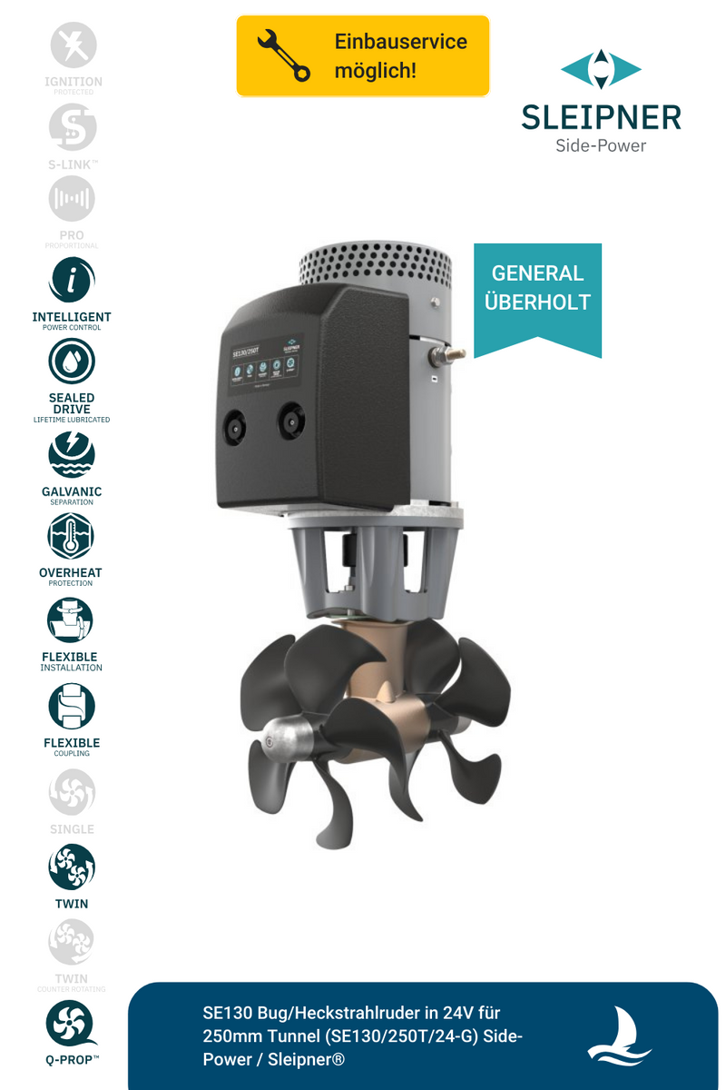 Sleipner® SE130 Bug/Heckstrahlruder 24V für Ø250mm Tunnel (SE130/250T-24V) *generalüberholt*