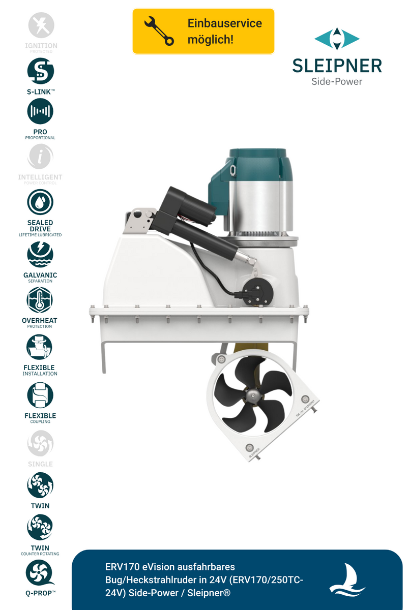 Sleipner® ERV170 eVision ausfahrbares Bug/Heckstrahlruder in 24V (ERV170/250TC-24V)