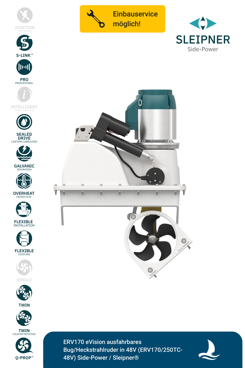 Sleipner® ERV170 eVision ausfahrbares Bug/Heckstrahlruder in 48V (ERV170/250TC-48V)