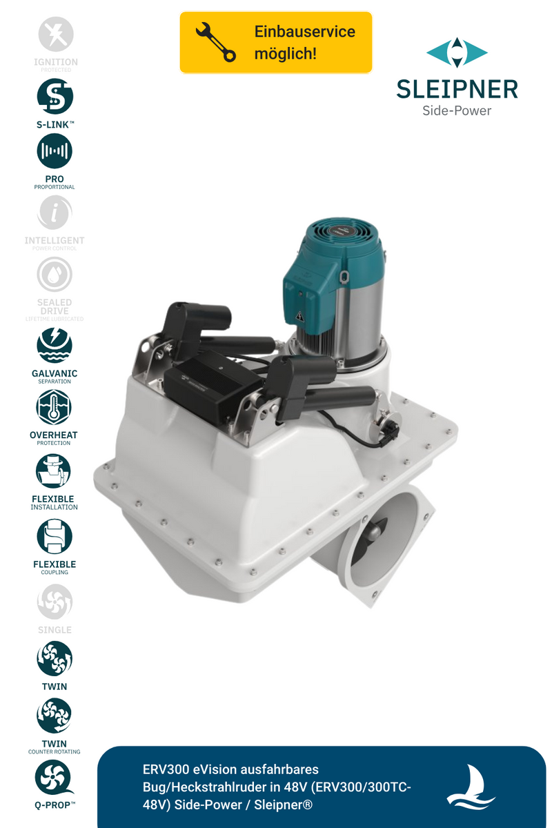 Sleipner® ERV300 eVision ausfahrbares Bug/Heckstrahlruder in 48V (ERV300/300TC-48V)