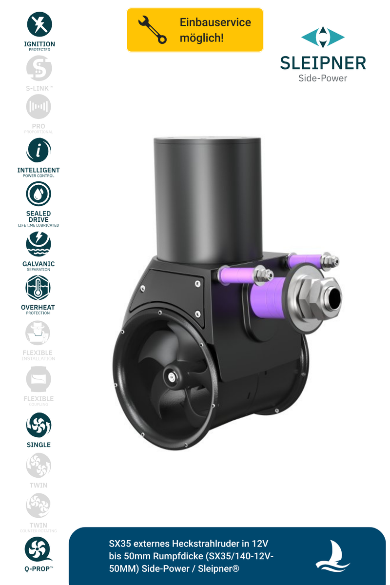 Sleipner® externes Heckstrahlruder SX35 in 12V I bis 50mm Rumpfdicke (SX35/140-12V-150mm-2)