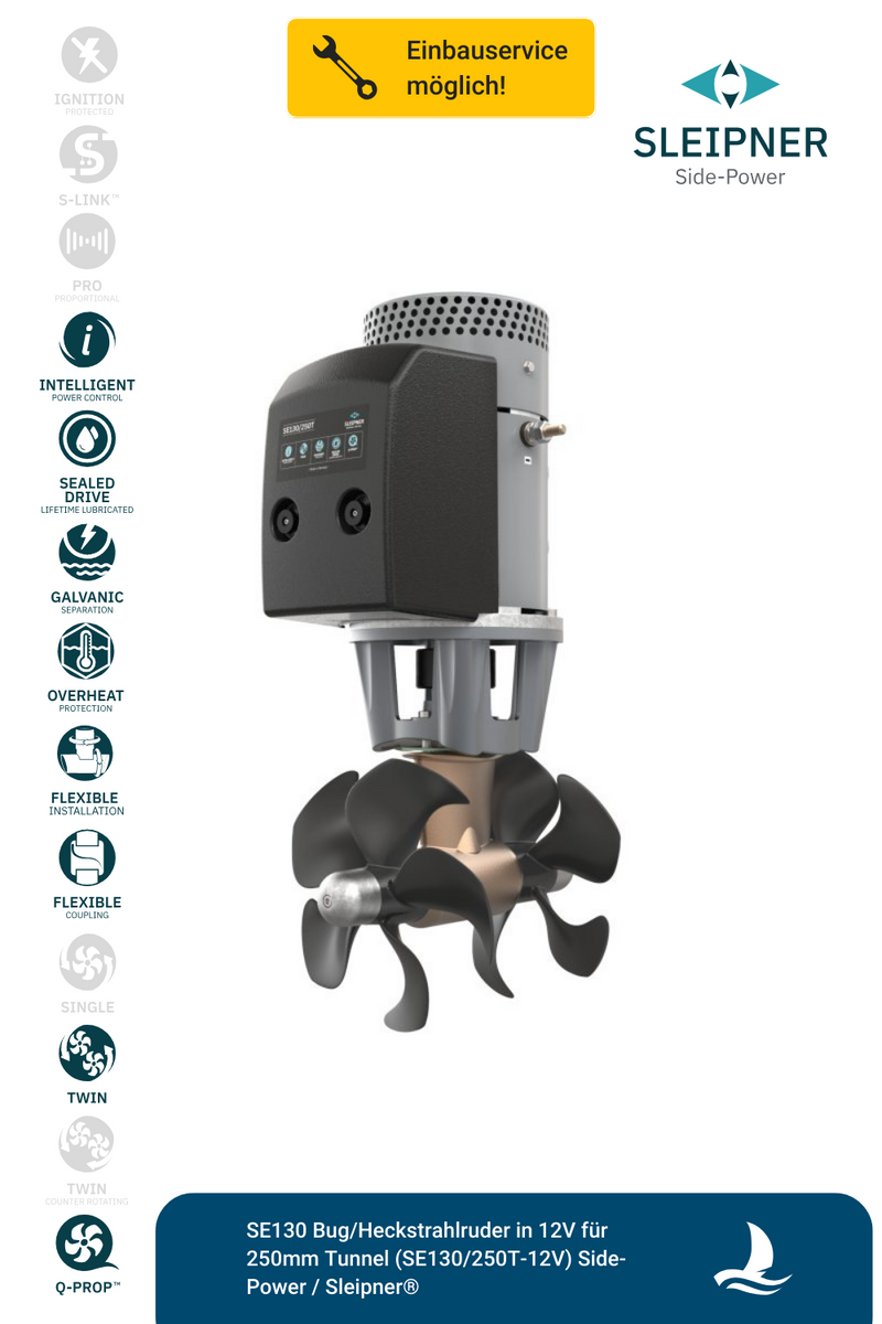 SE130 Bug/Heckstrahlruder in 12V für 250mm Tunnel (SE130/250T-12V) Side-Power / Sleipner®
